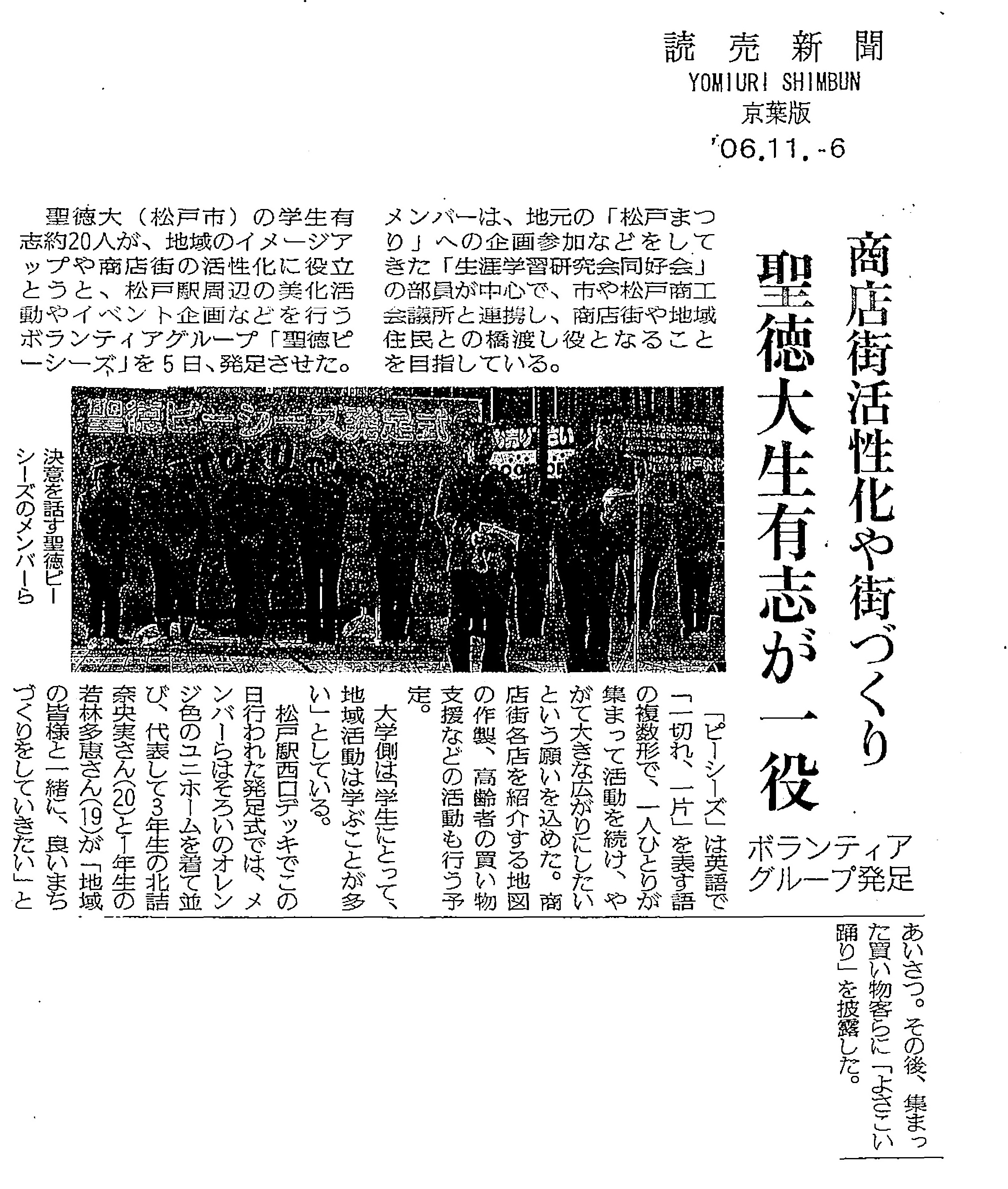 18.11.06 読売新聞「商店街活性化や街づくり 聖徳大生有志が一役」