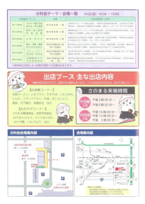 終日 交流広場、物産コーナー、グループ交流、静のアート作品展、資料交換、図書販売、弁当販売等
