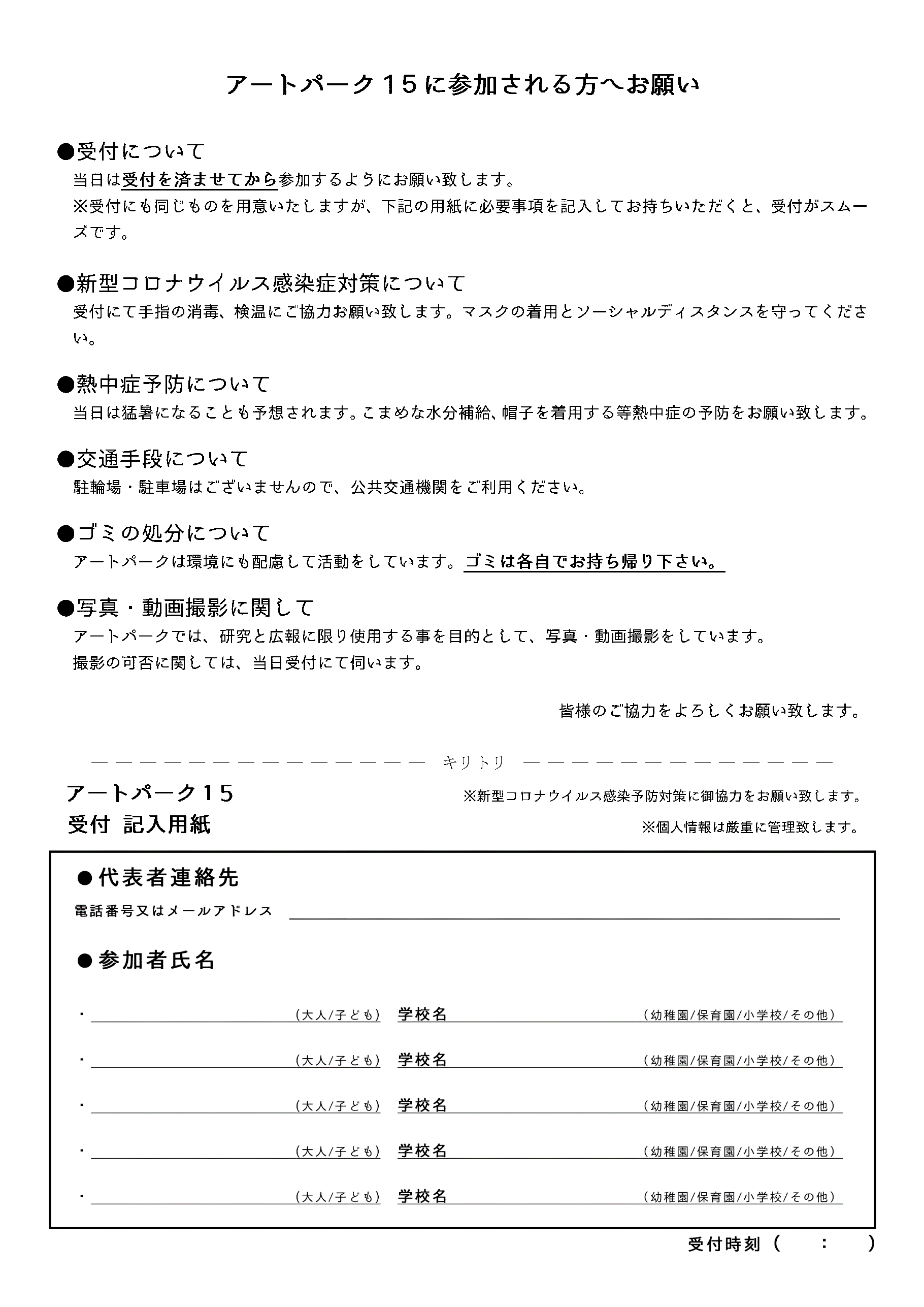 アートパークは環境にも配慮して活動をしています。ゴミは各自でお持ち帰り下さい。