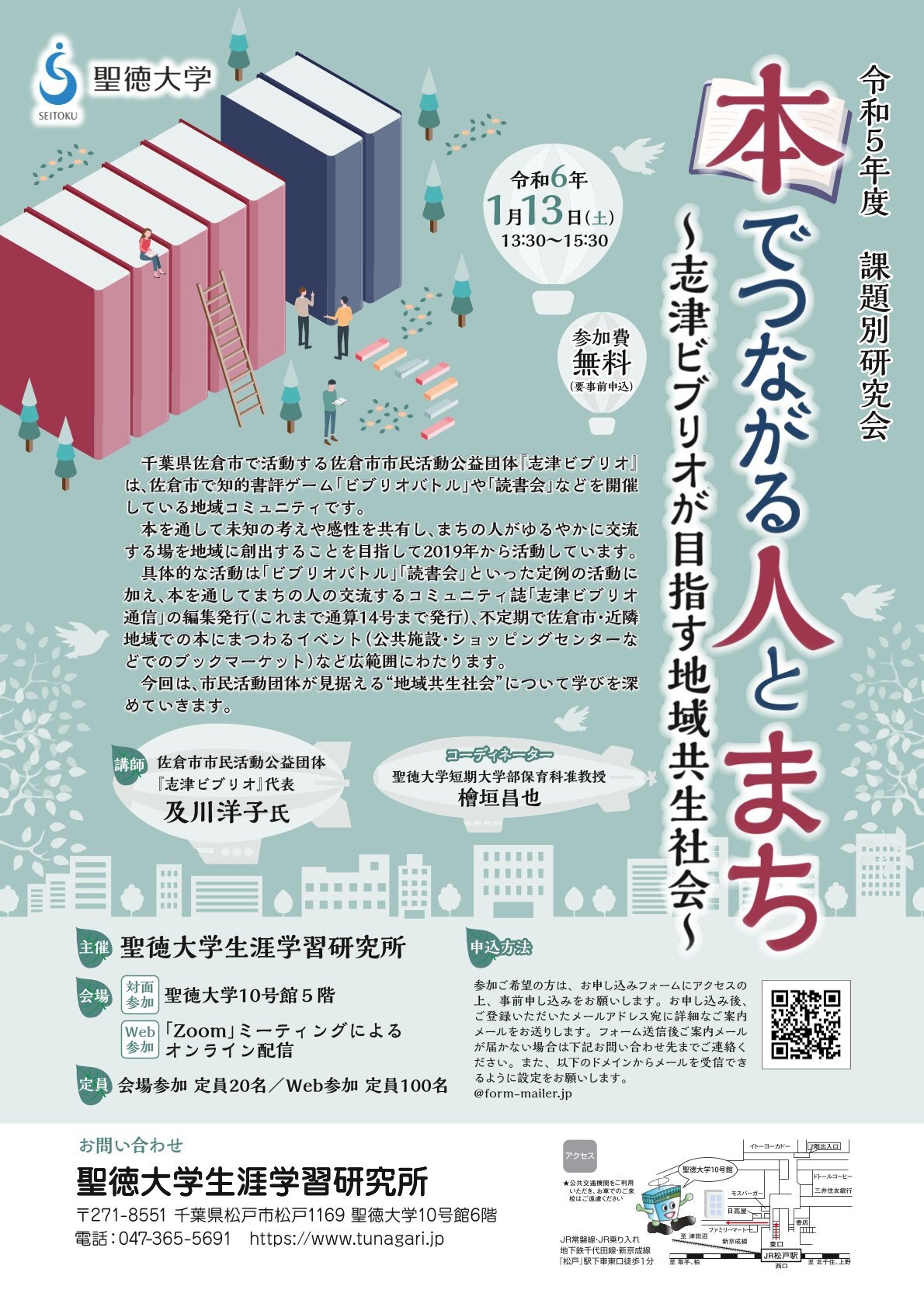 問合せ先:聖徳大学生涯学習研究所 TEL: 047-365-5691