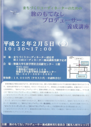HOME > 研究・実践事業 > 平成21年度(2009年度) > 旅のもてなしプロデューサー特別講座2月