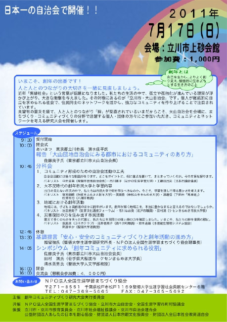 HOME > 研究・実践事業 > 平成23年度(2011年度) > 創年コミュニティ研究大会