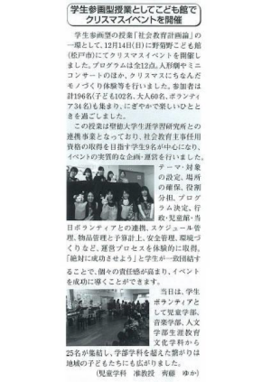 松戸市、特定非営利活動法人松戸子育てさぽーとハーモニー、児童学部児童学科、人文学部生涯教育文化学科