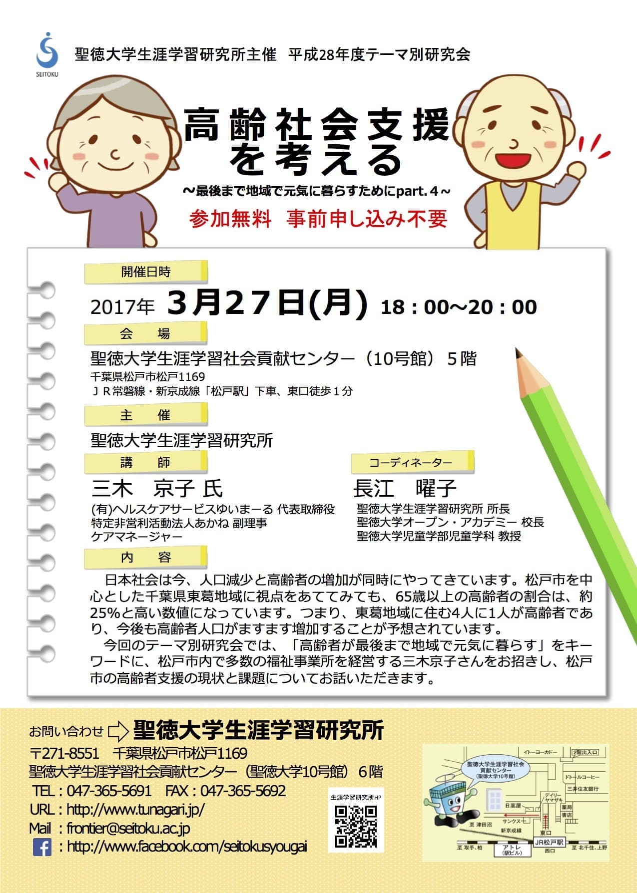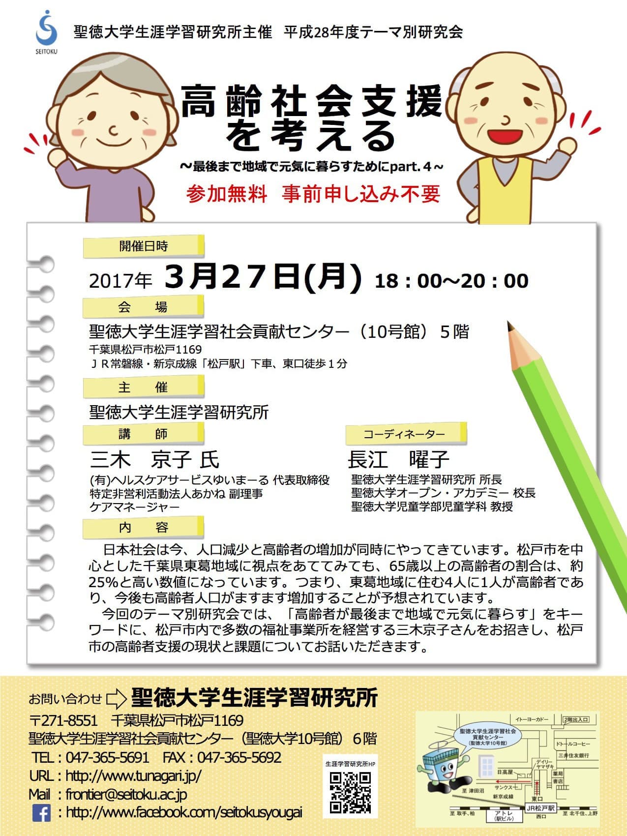 HOME > 研究・実践事業> 平成28年度(2016年度) > (主催事業)高齢社会支援を考える