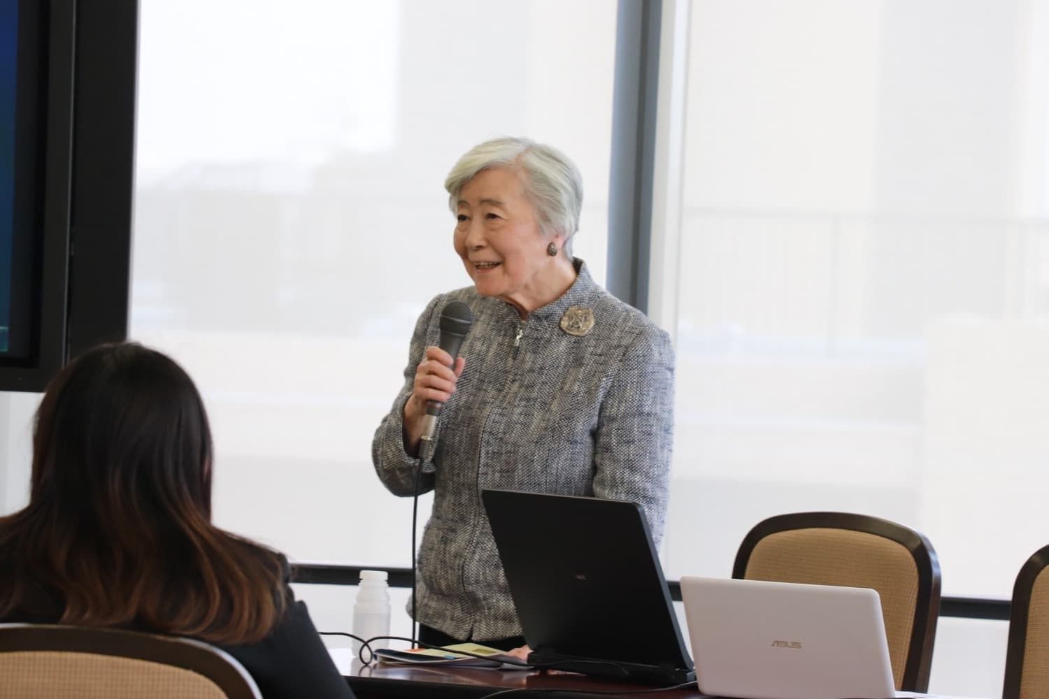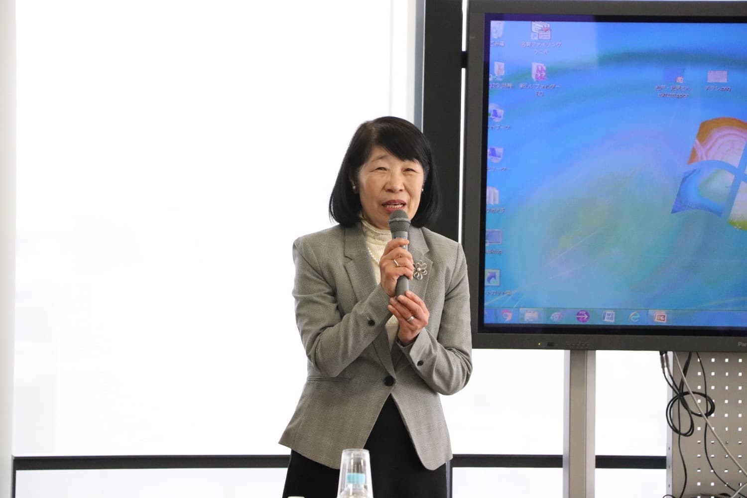 講評は、聖徳大学元教授・学校法人恵泉学園前学長・SOA元校長松下俱子先生から、聖徳の生涯学習の取り組みが、日本でも先駆的であり、SOAも地域で必要とされ発展してきた点、今後も地域との連携を大切に大学が地域に根ざして、地域課題に取り組む必要性を指摘されました。川並弘昭先生が「女性ならではの人間性を備えた、リーダーの育成」を重視されていたことを紹介され、「人材育成」の場としての生涯学習研究所への期待を語って下さいました。
