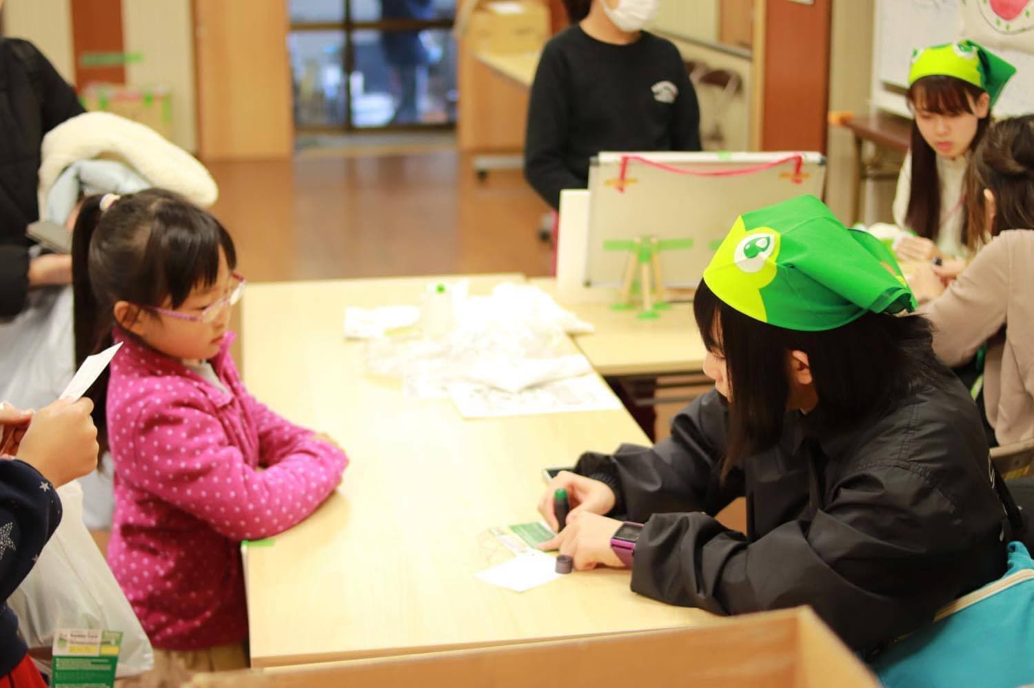 (かえっこカードにポイント数分のカエルスタンプを押してもらう)