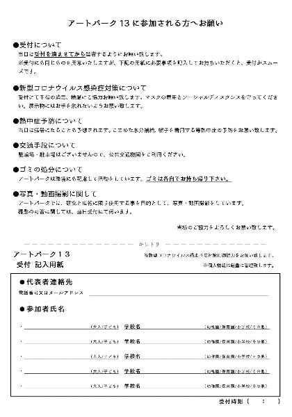 *アートパーク13受付票 ダウンロード*